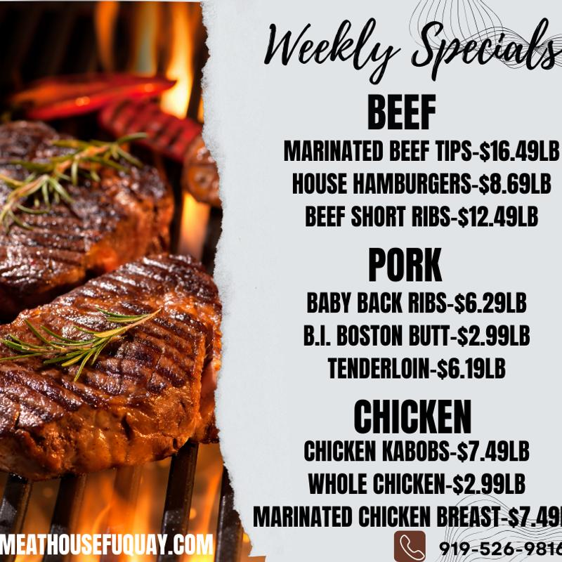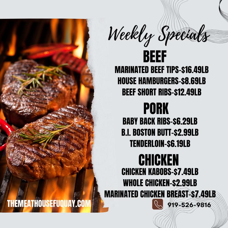 Inquire about cateringWelcome to The Meat House of Fuquay, where quality meets community. We proudly offer a premium selection of fresh meats, artisanal sausages, and deli specialties sourced with care. Our passion is delivering top-quality products and personalized service to every customer. Whether you're planning a backyard BBQ or a gourmet dinner, we’re here to make it unforgettable.